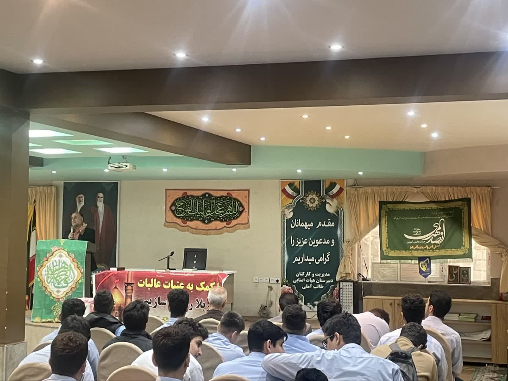 مراسم کمک به عتبات وعالیات در دبیرستان هیات امنایی طالب املی با حضور جناب اقای سرهنگ پاسدار اعتمادنیا ، جناب اقای حسن زاده و کارشناس امورتربیتی جناب اقای مهدوی ، دانش اموزان وهمکاران برگزا گردید