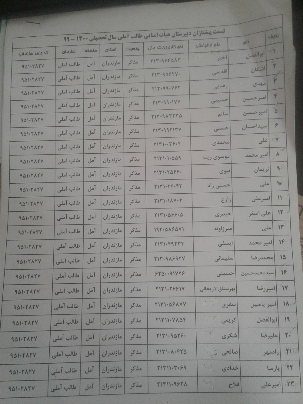 اسامی دانش آموزان عضو پیشتازان سال تحصیلی 1400-1399